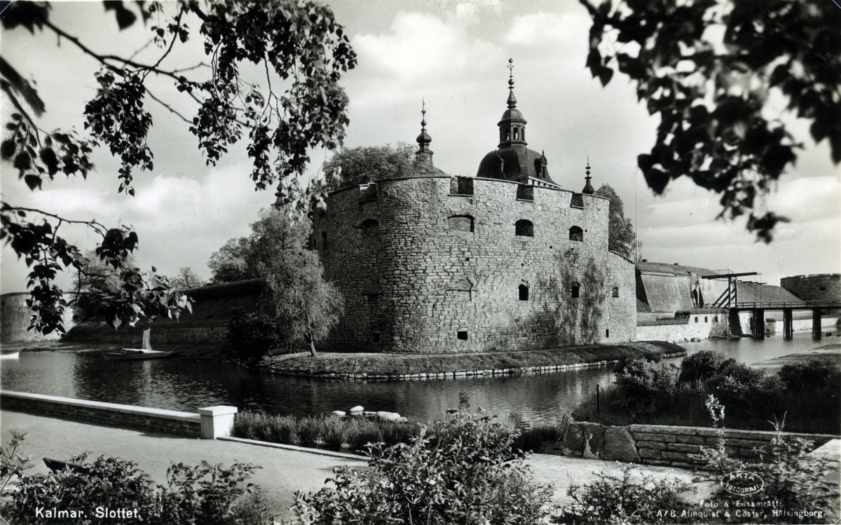 Kalmar slott fotograferat ifrån Stadsparken. Norra postejen i centrum.