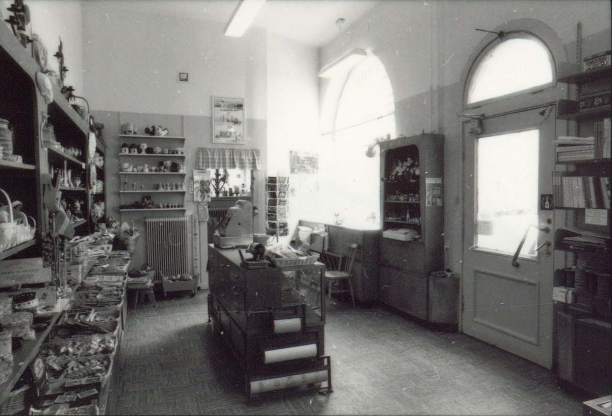 Teaterbutiken Calmus, interiör med kassadisk och varuhyllor.