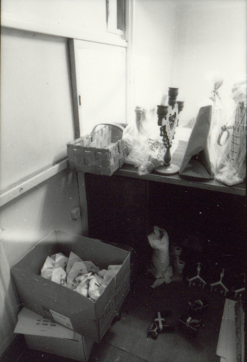 Interiör från museibutiken Calmus, butiksdisk med varor.