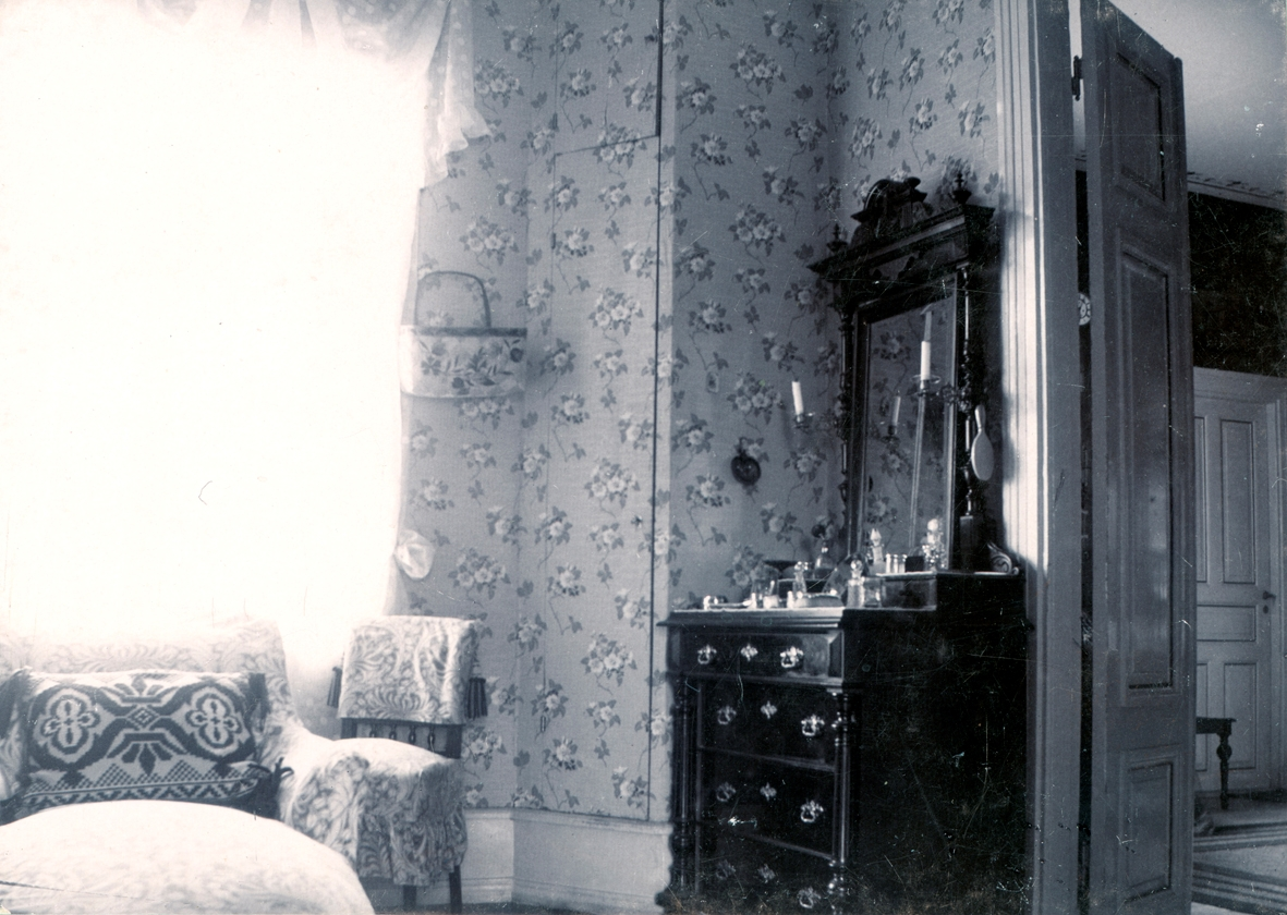 Ett fönster, byrå och spegel i Sven Sundbergs hem.
