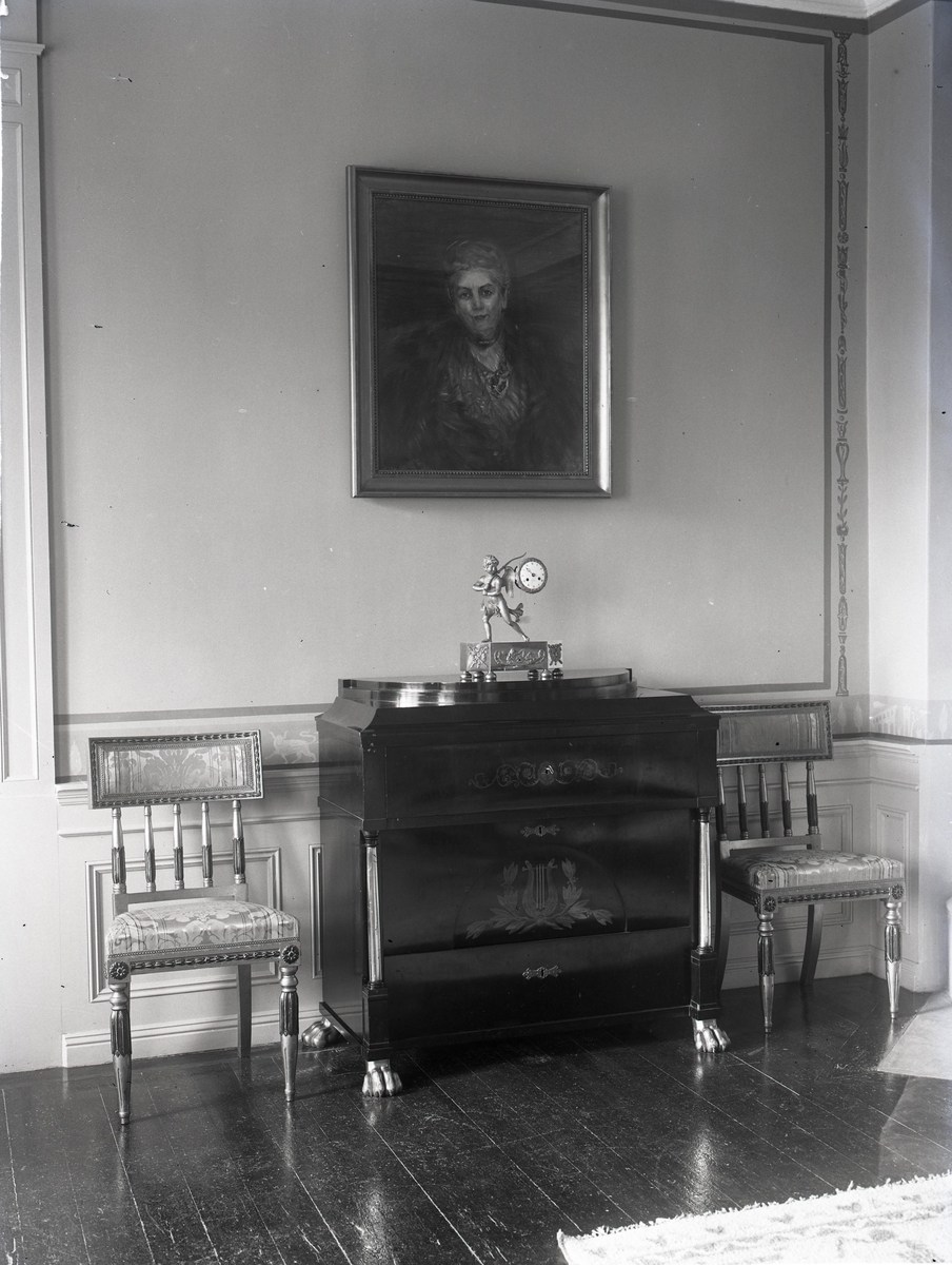 Stolar, sekretär med bordsur och porträtt i herrgården Fågelfors bruk.