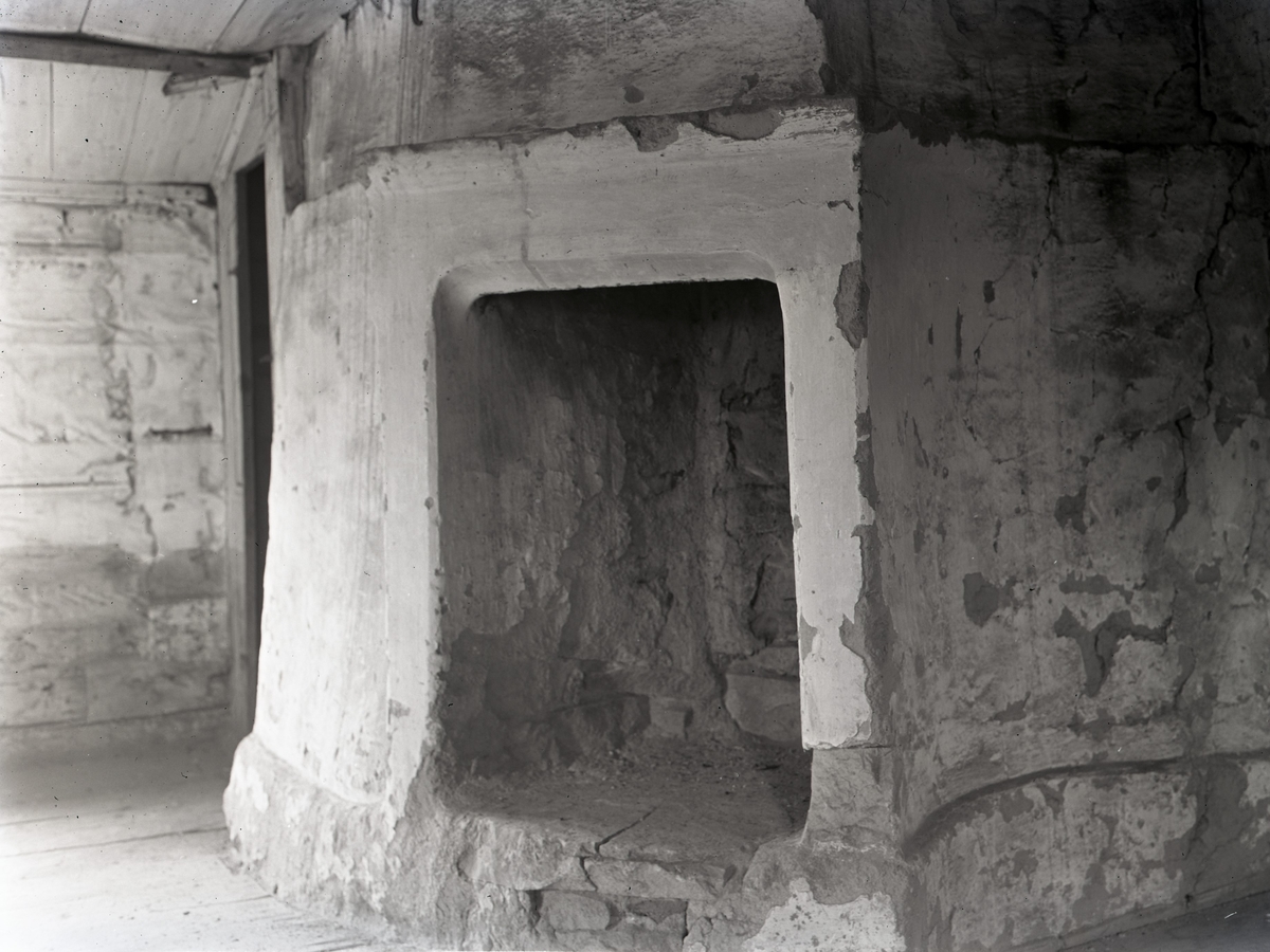 Hembygdsgård, interiör med öppen spis.