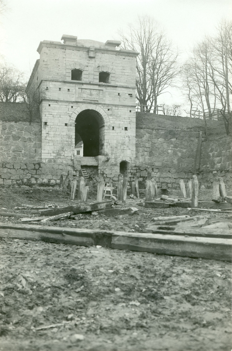 Delar av den gamla bron över Systraströmmen då denna var torrlagd.