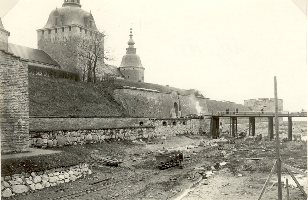 Vallgraven torrlagd under de stora utgrävningarna 1932-34.