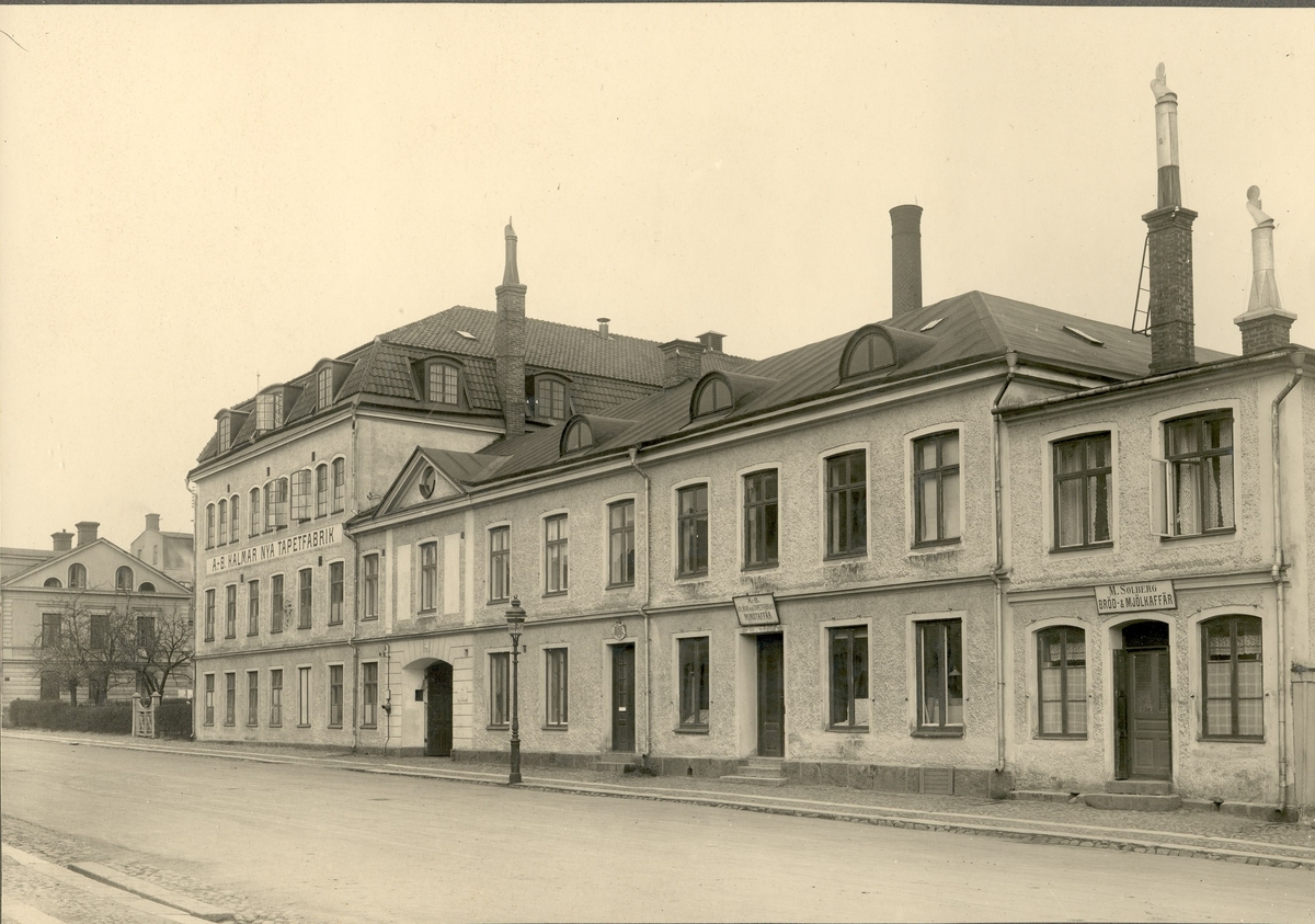 A-B Kalmar nya tapetfabrik, A-B Kalmar nya tapetarnas minutaffär och M. Solberg bröd & mjölkaffär.
