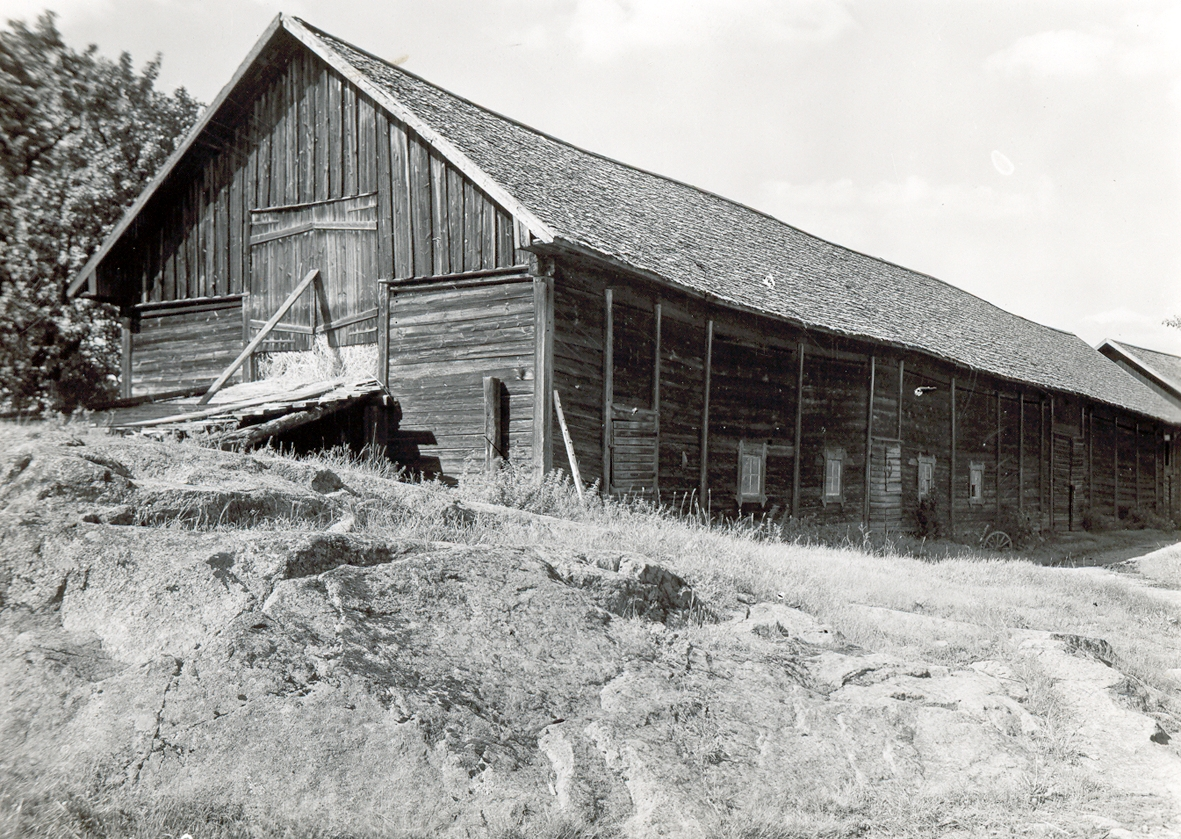 Så kallat körhus. Ladugårds- och loglänga med vandringsskjul. Foto från söder.
