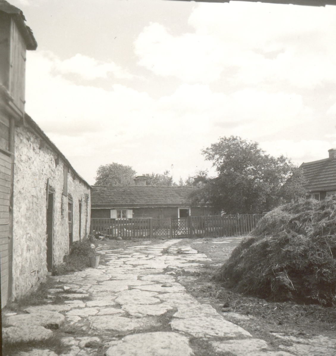 Bostadshus, ekonomibyggnad och stenläggning i Folkeslunda.