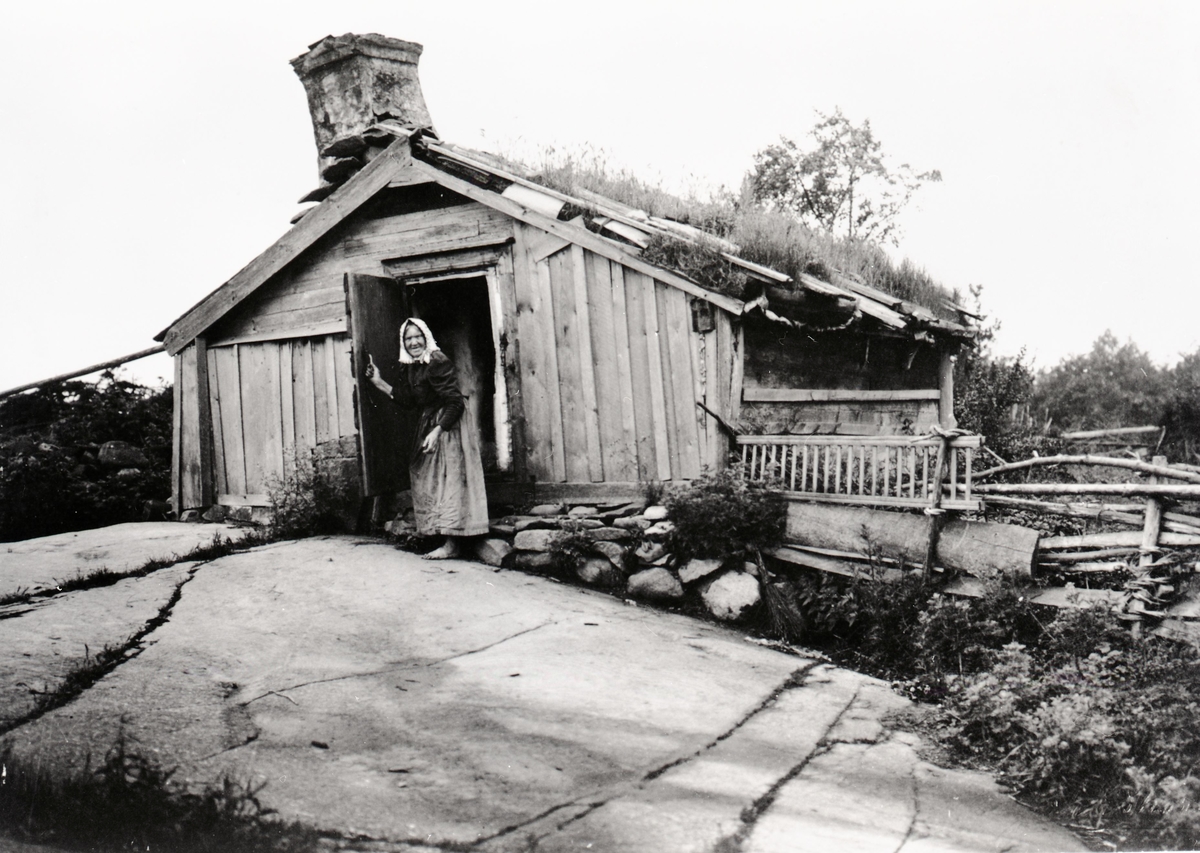 Exteriör av ryggåsstugan ett vid Linnabacken.