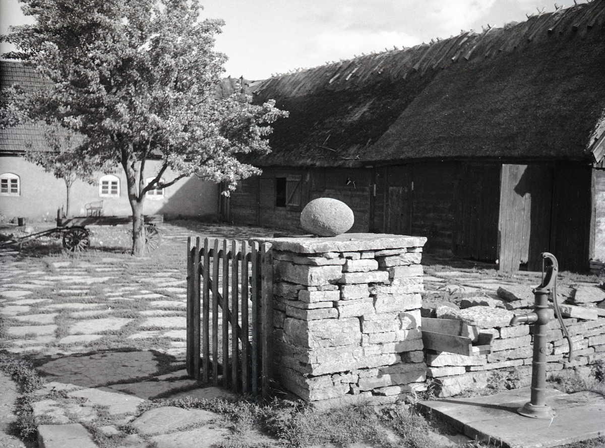 Avgränsningen mellan mangård och fägård på kringbyggd öländsk gård.