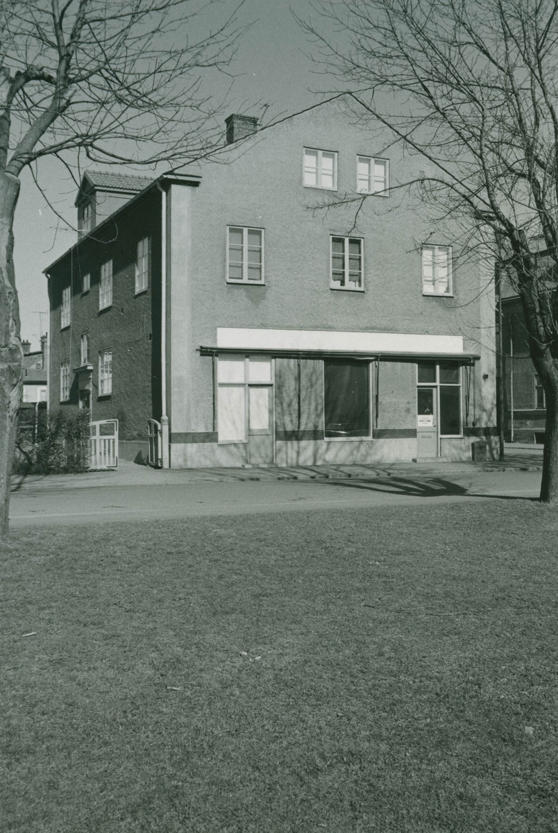 Ett bostadshus med putsad fasad på Bjelkegatan 11 i Ängö.