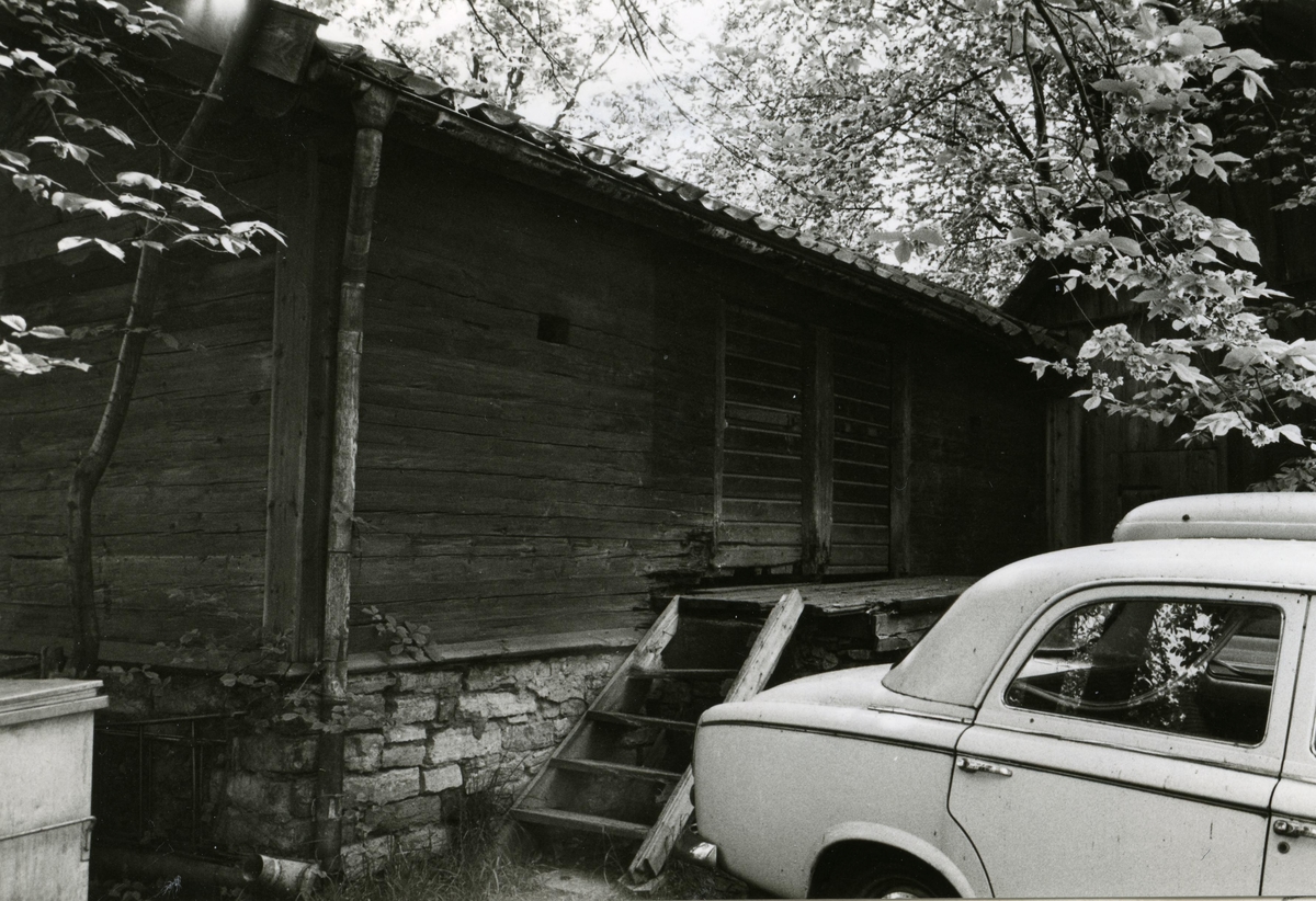 Bil och ekonomibyggnad i kvarteret Häggen nummer 2.