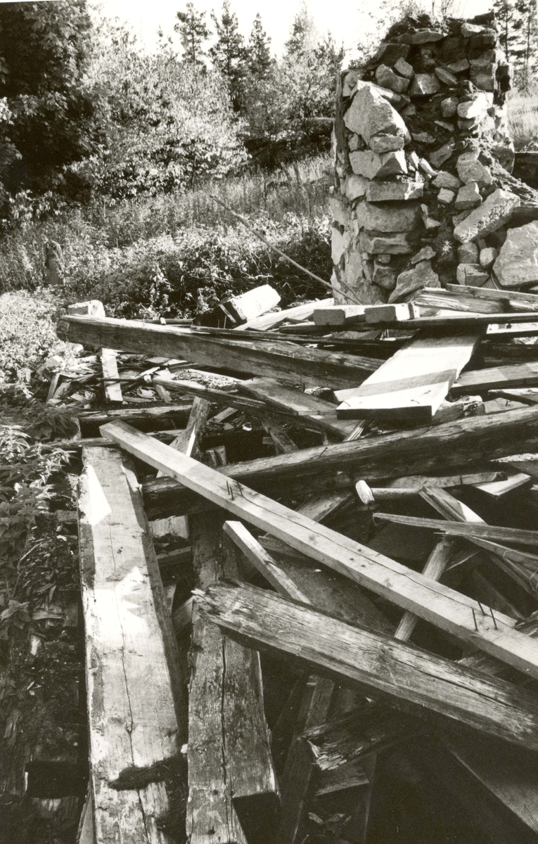 Grönlid. Grund med syll till riven byggnad ingående i bränneriet.