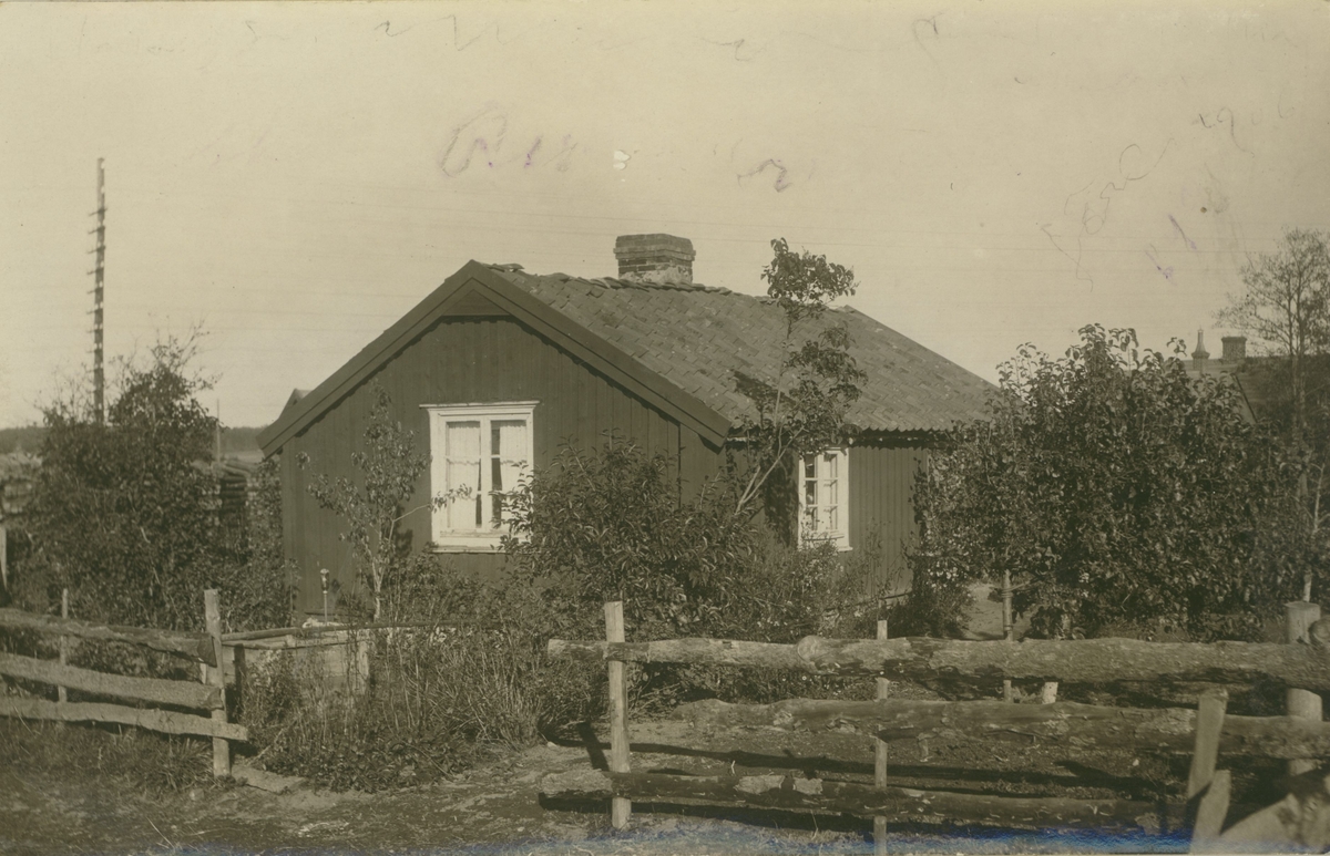 Stuga vid Rinkabyholms järnvägsstation. Den beboddes av änkefrun Karolina Gråberg från 1881 tills 1936,då hon avled 93 år gammal.