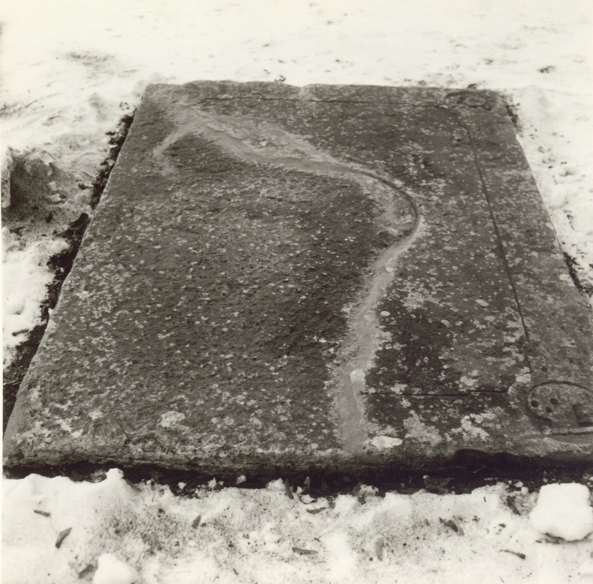 Titel: Liggande gravhäll på gamla kyrkogården i Kalmar.