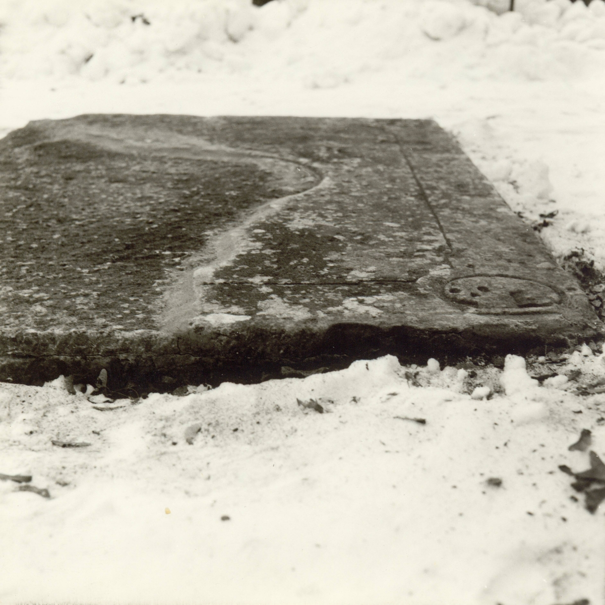 Liggande gravhäll på gamla kyrkogården i Kalmar.