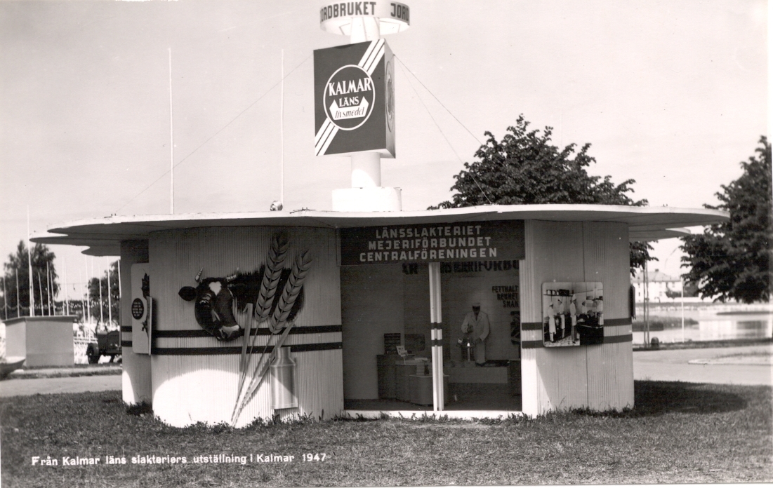 Reklam för Kalmarläns slakterier på hantverksutställningen 1947.
