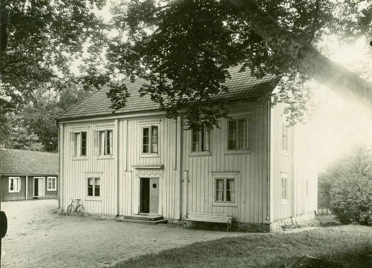 Huvudbyggningen: gårdssidan. Väggar vita. Husets plan moderniserad och förändrad. T.V. gammal flygelbyggnad.