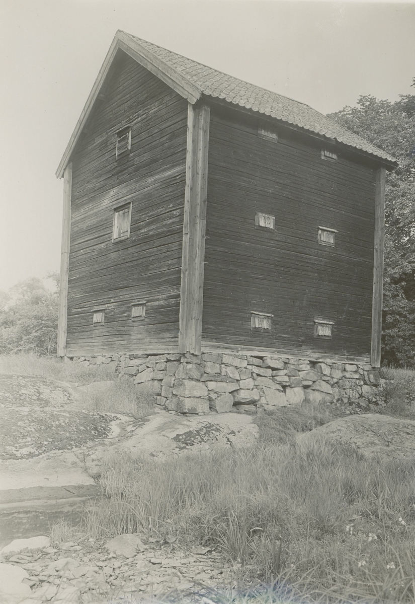Forsby herrgård: Magasin vid ån, av timmer i tre bottnar.