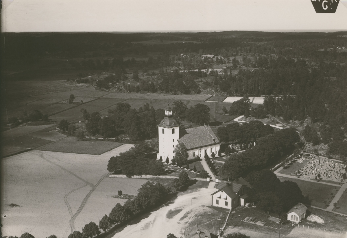 Flygfoto över Loftahammars kyrka.