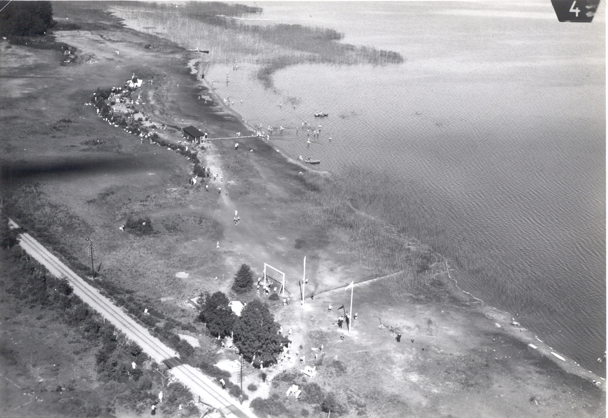 Flygbild över strand nära Hultsfred.