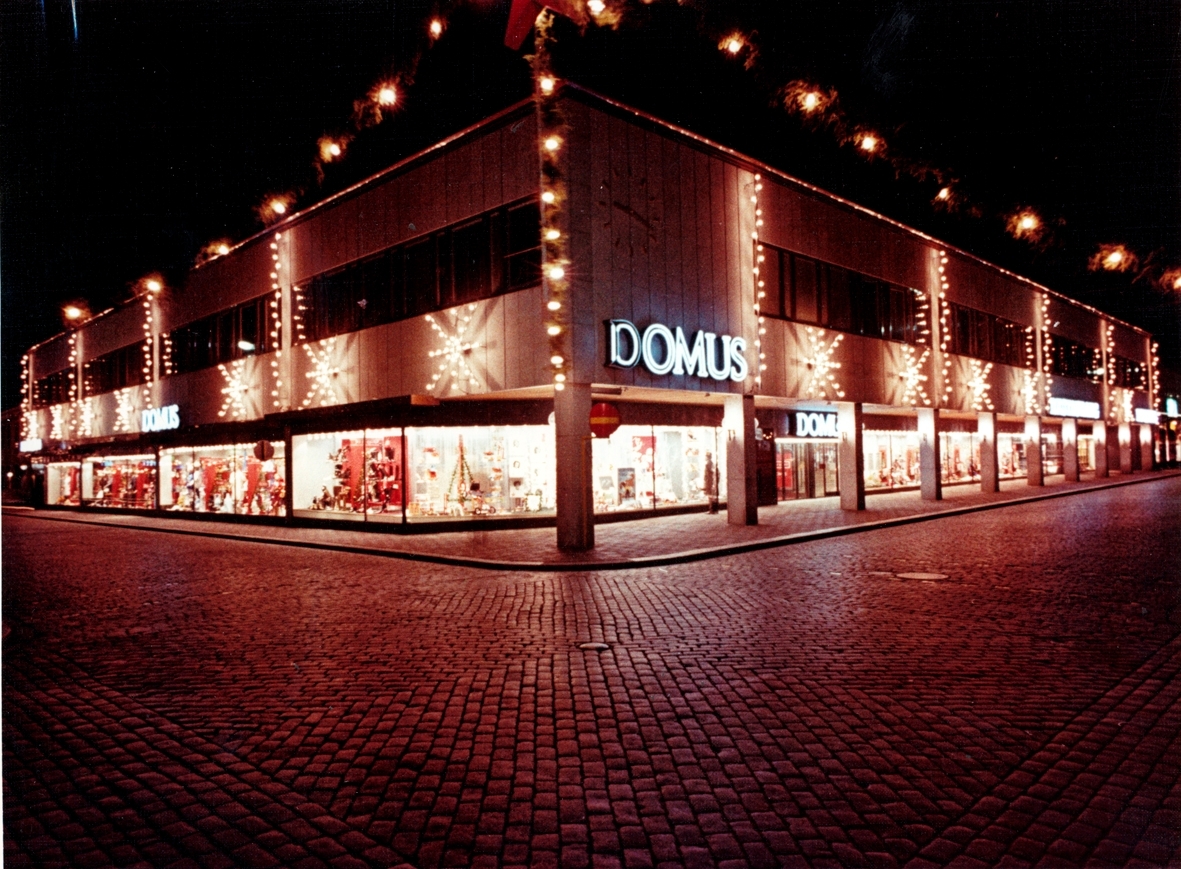 Domus i Kalmar var först med denna julbelysning (fasadbelysning) av alla Domusvaruhus i landet, i slutet av 1960-talet.