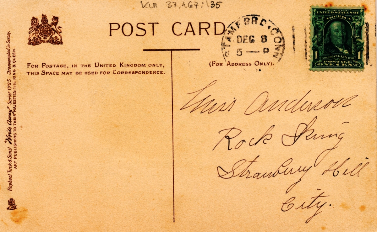 Ett vykort till Miss Anderson, Strawberry Hill, City från Nellie.