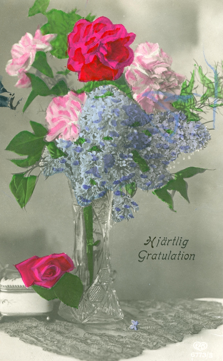 Titel: Ett gratulationskort till Karin Andersson, Karlskrona från moster Nanny.