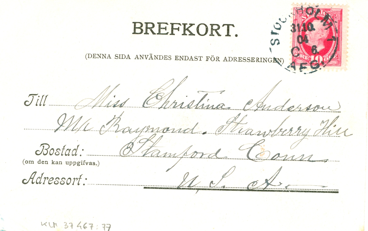 Titel: Ett vykort till Christina Anderson, Stamford, Connecticut, USA från Edvard Nilsson i Böda.