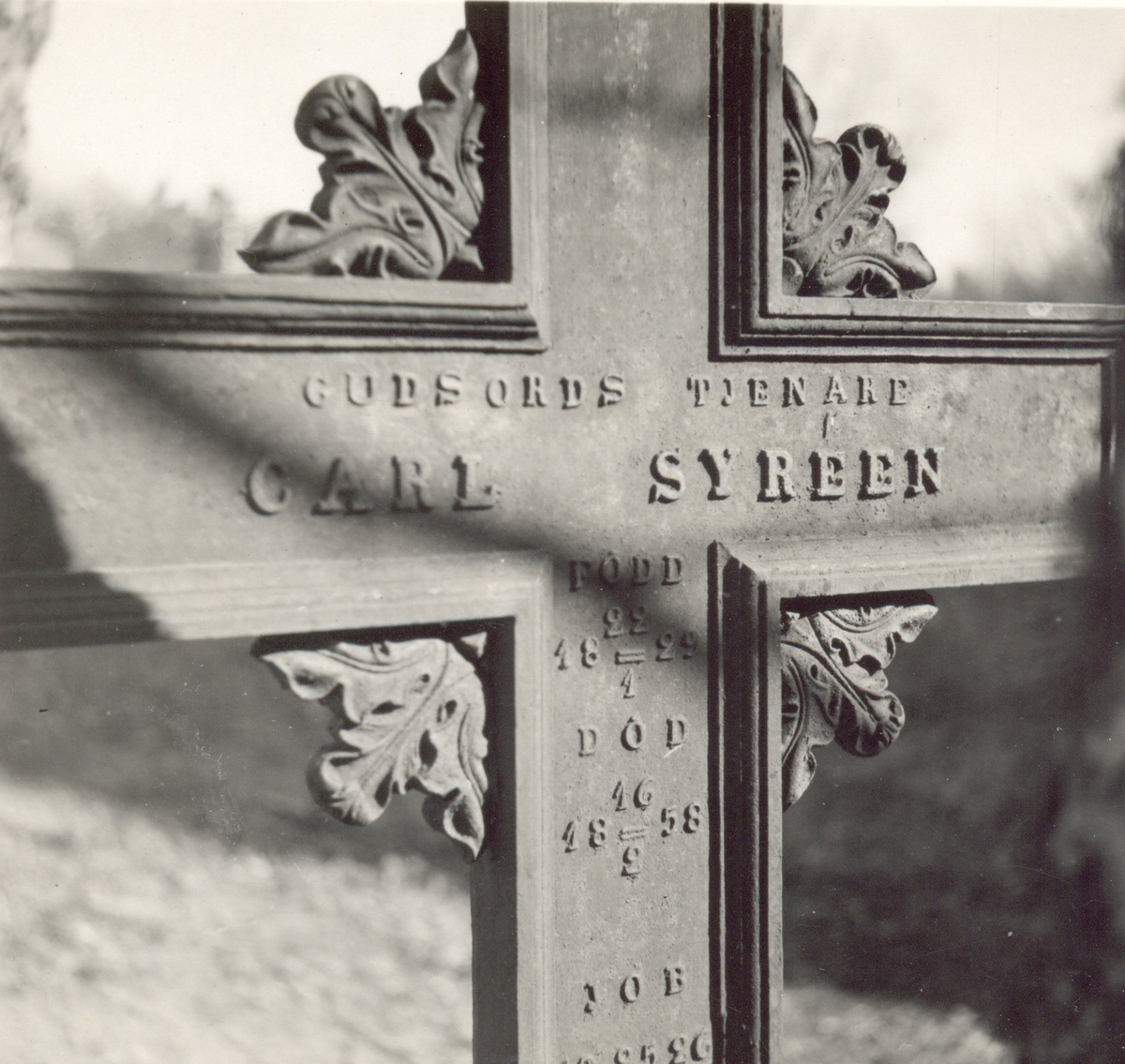 Text på korset:"Gudsords tjenare. Carl Syréen."