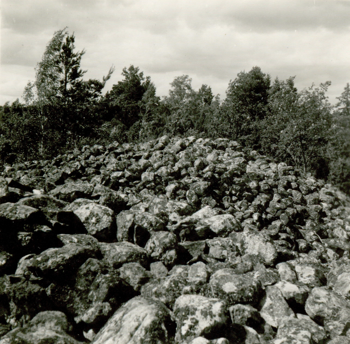 Gravfält på berget 300 meter sydost om Lund, mitt för Gladhammars kyrka. De stora rösena längst i söder.