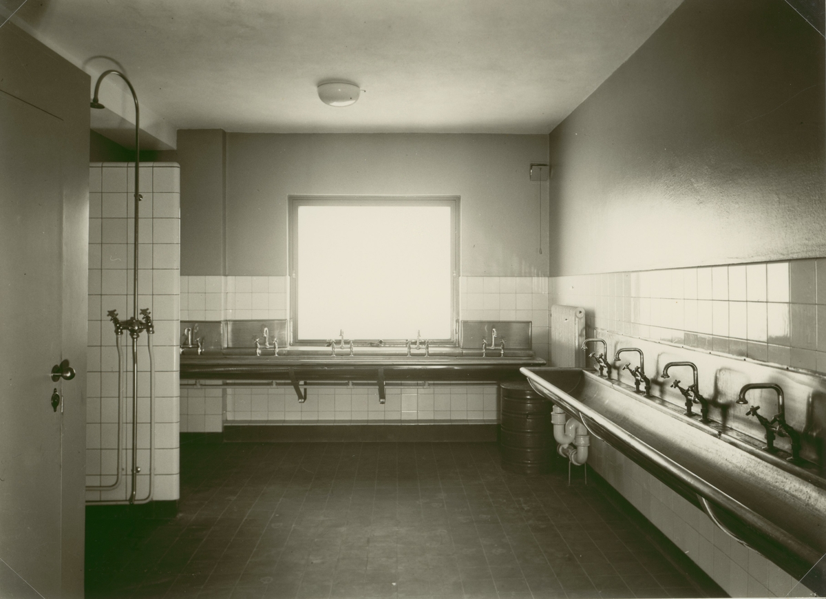 Carlströms Bil AB. Omklädningsrum med dusch och tvättränna.