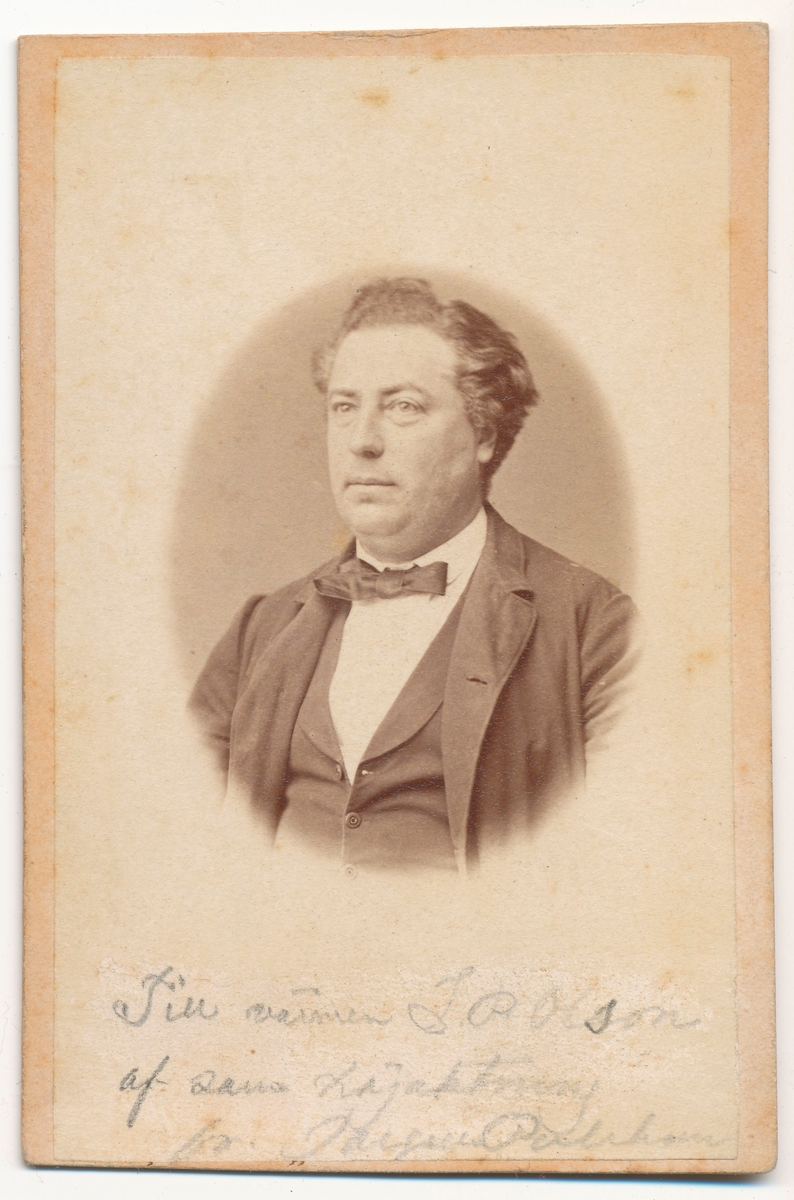 Till vännen J P Olson av sann högaktning från Jacques Pulchau. Skådespelare Jacques Pulchau [1830-1891].