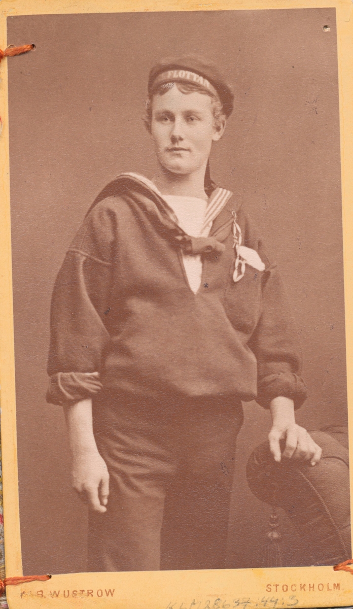 Porträtt på en man fotot är monterat, (fastsytt), i ett tygomslag. Därför kan baksidan ej skannas.