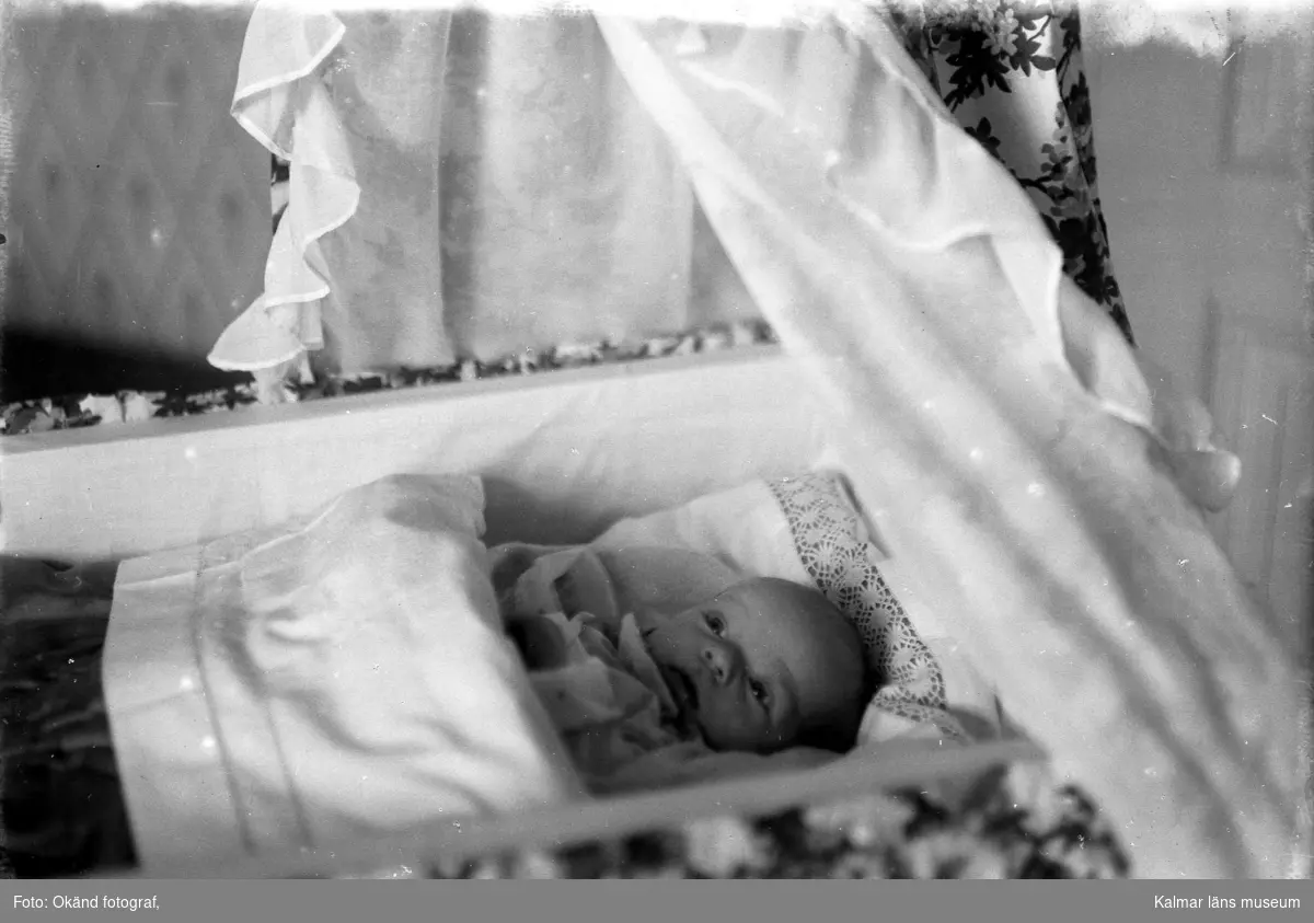 Baby i en säng. Beställare: Fru O Holmquist, Kalmar.