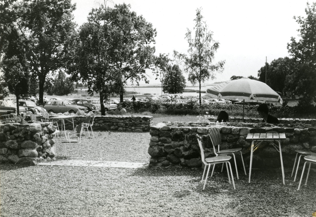 Uteservering och bilparkering vid Kolbodabaden.