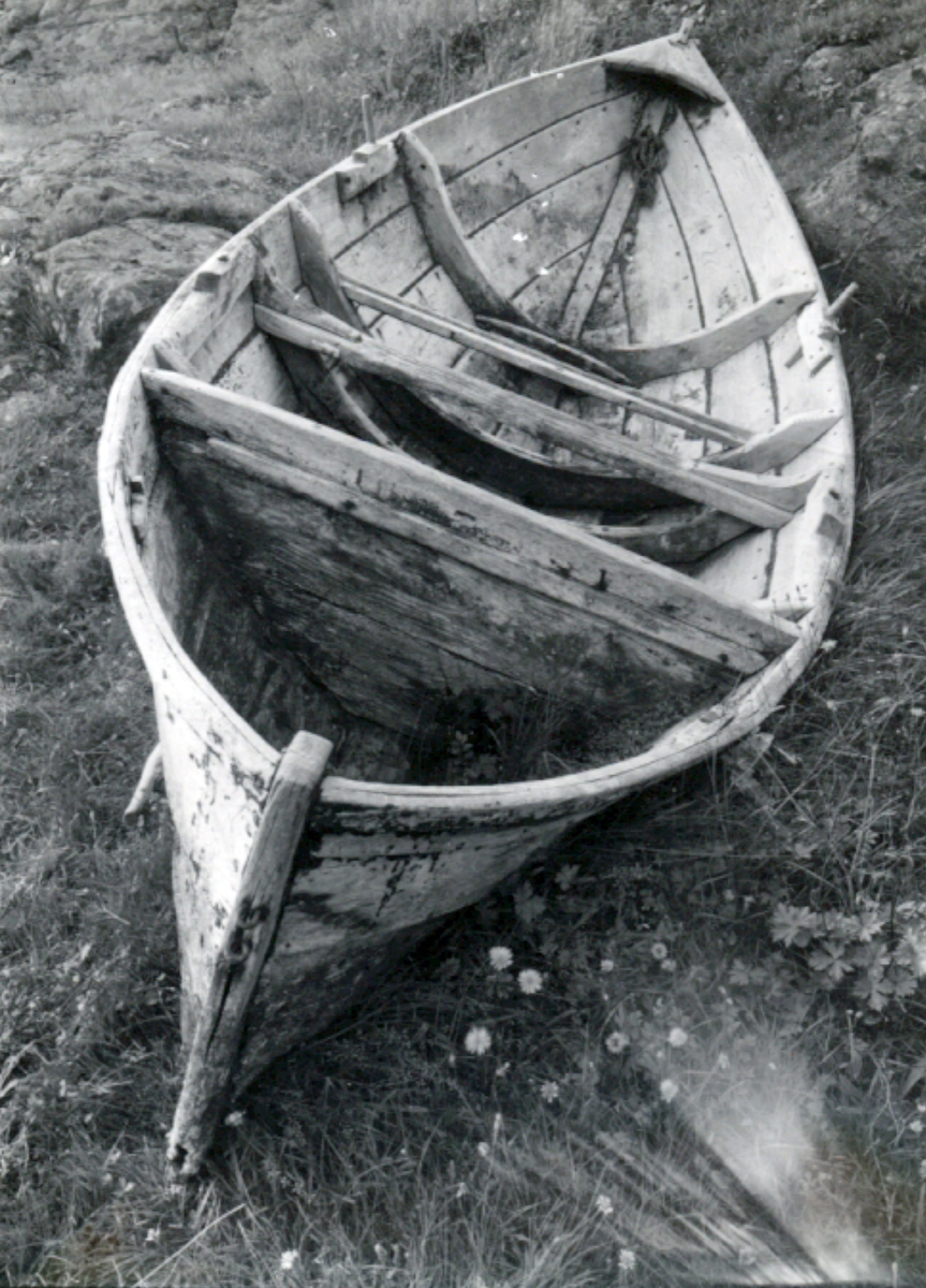 Fiskebåt med sumphåll i aktern, byggd av ek. Bild akterifrån. Ägare: Karl Samuelsson. Härtill ett annat foto, ritningar och beskrivning.