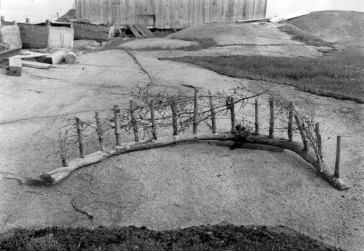 Skjutskärm för andjakt etcetera. Bredd 1,585 meter, pinnarnas höjd 20 -32 centimeter. Ägare: Karl Samuelsson.