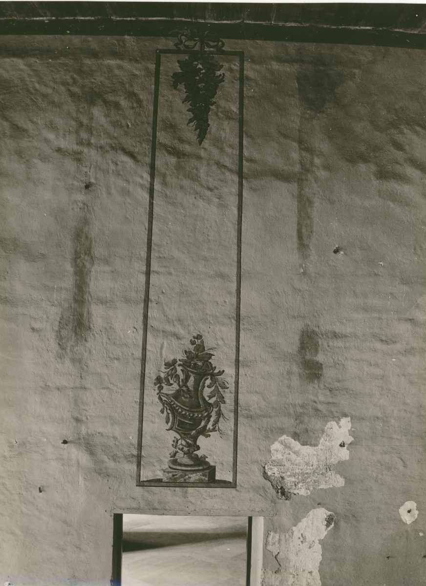 Kalmar slott, Drottningsalen. Kalkmålning från 1770-talet på norra väggen, senare borttagen.