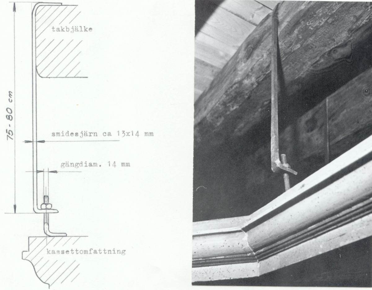 Gyllene salen. på Kalmar slott, detalj av taket. Upphängning av kassettak.