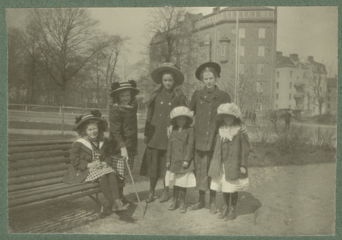 Barn på Bremerlyckan. Till vänster i bakgrunden ligger Rostad. Huset till höger; Linnégatan 2, finns kvar.