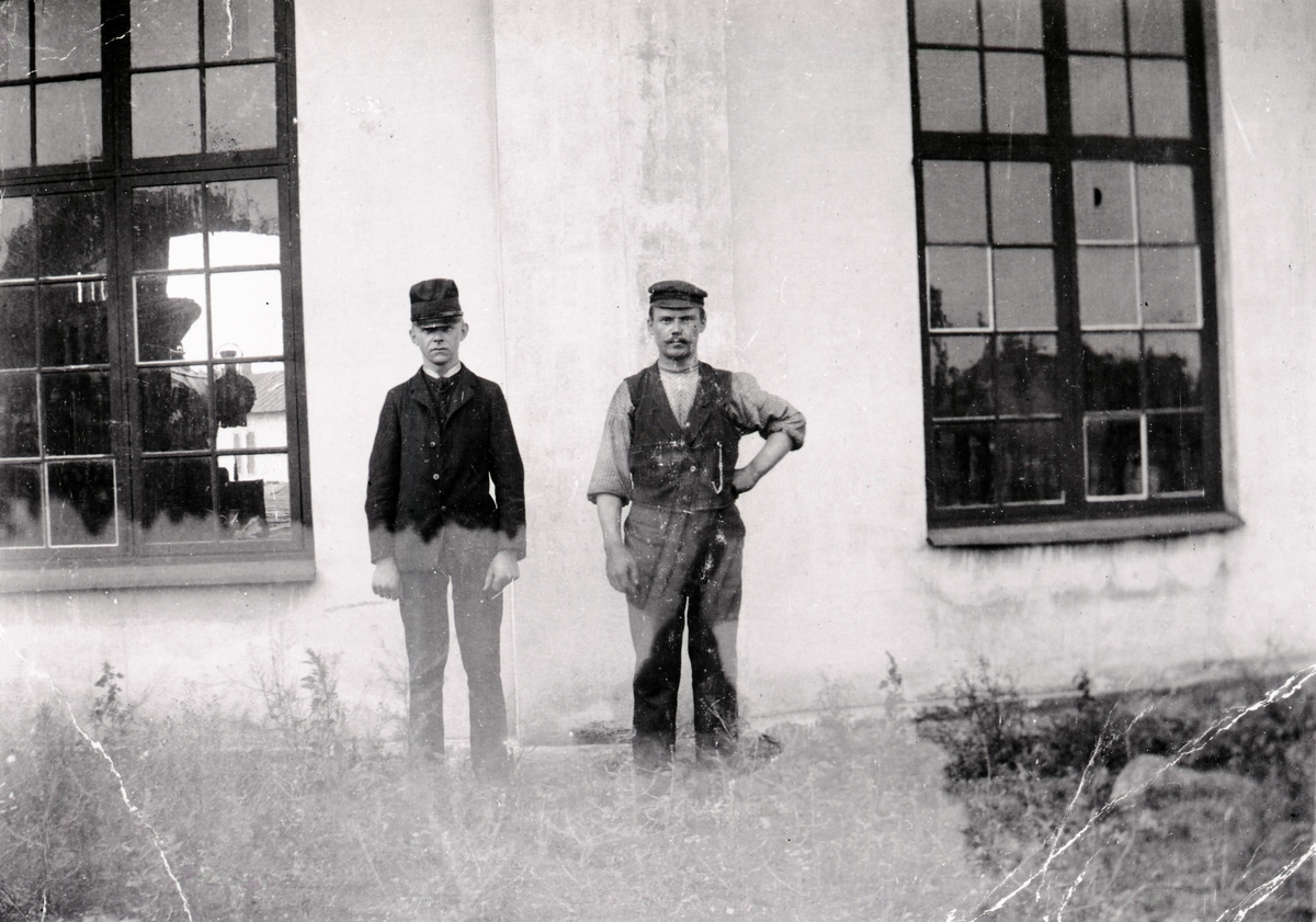 Gruppbild utanför okänd järnvägsstation.