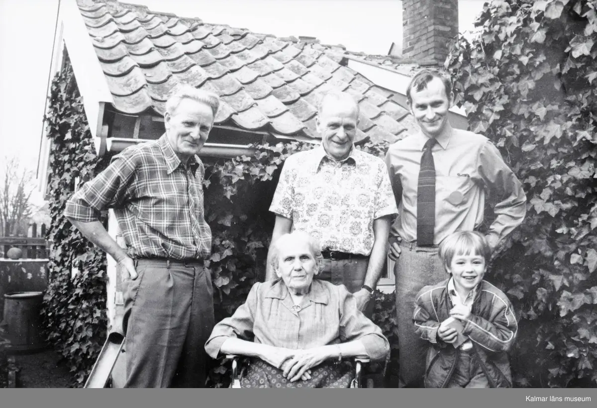 Kjell, brodern Stig (född 1914), Stigs son John och barnbarn. Edith i rullstol.