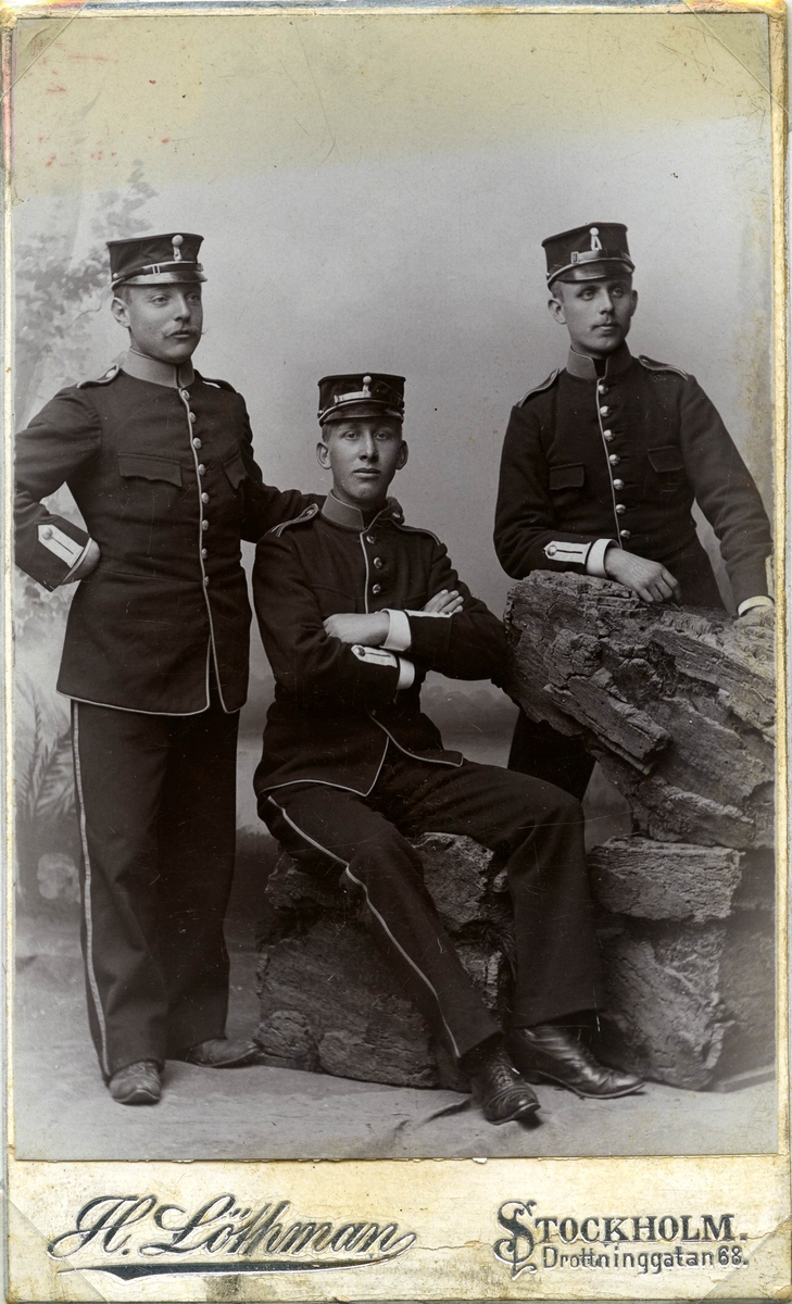 Porträtt av Ragnar L. Jeansson med två kamrater.
