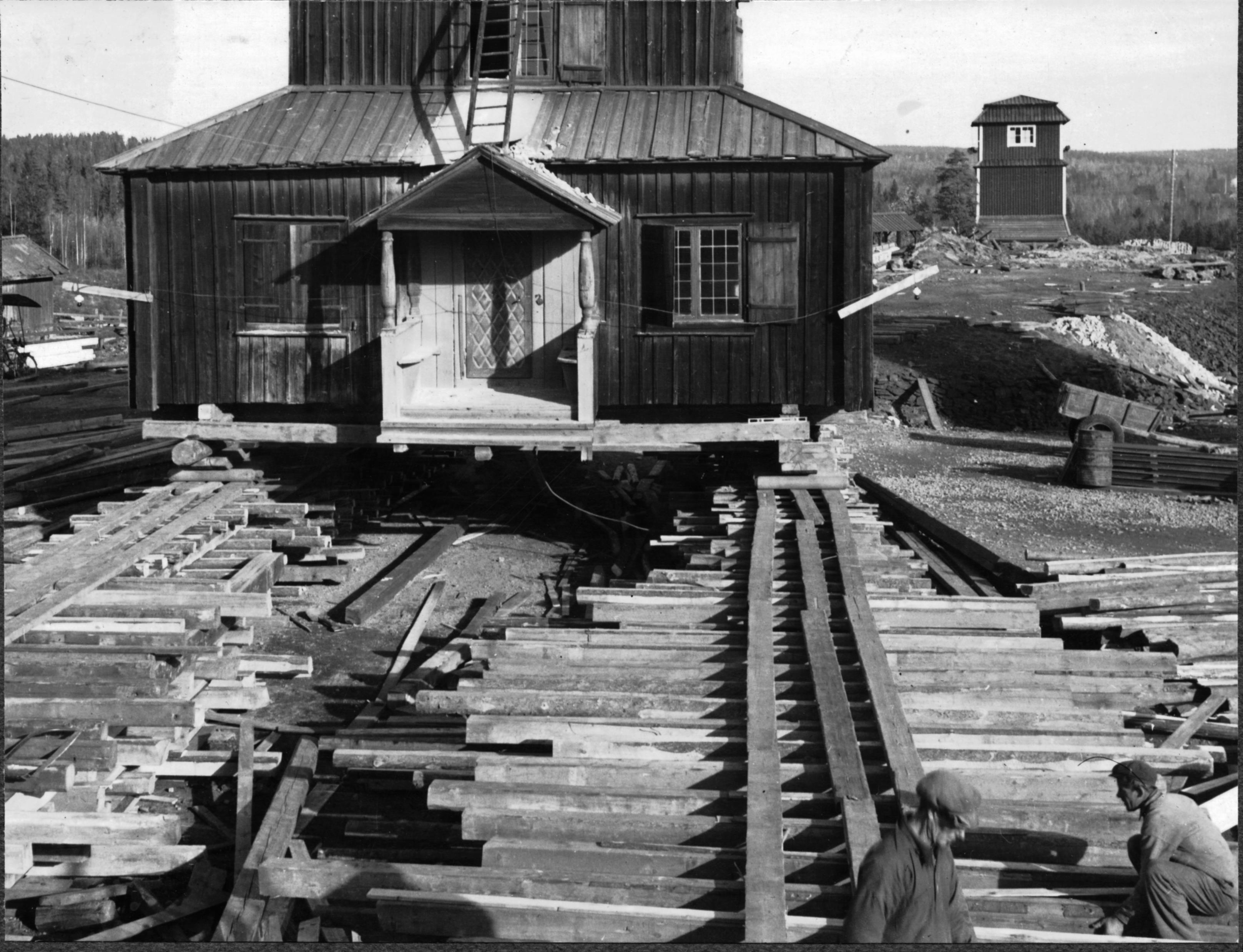 Kapellets exteriör. Fotografiet taget vid förflyttningen av kapellet.