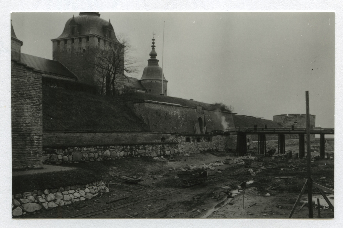Arkeologisk undersökning i vallgraven vid Kalmar slott.