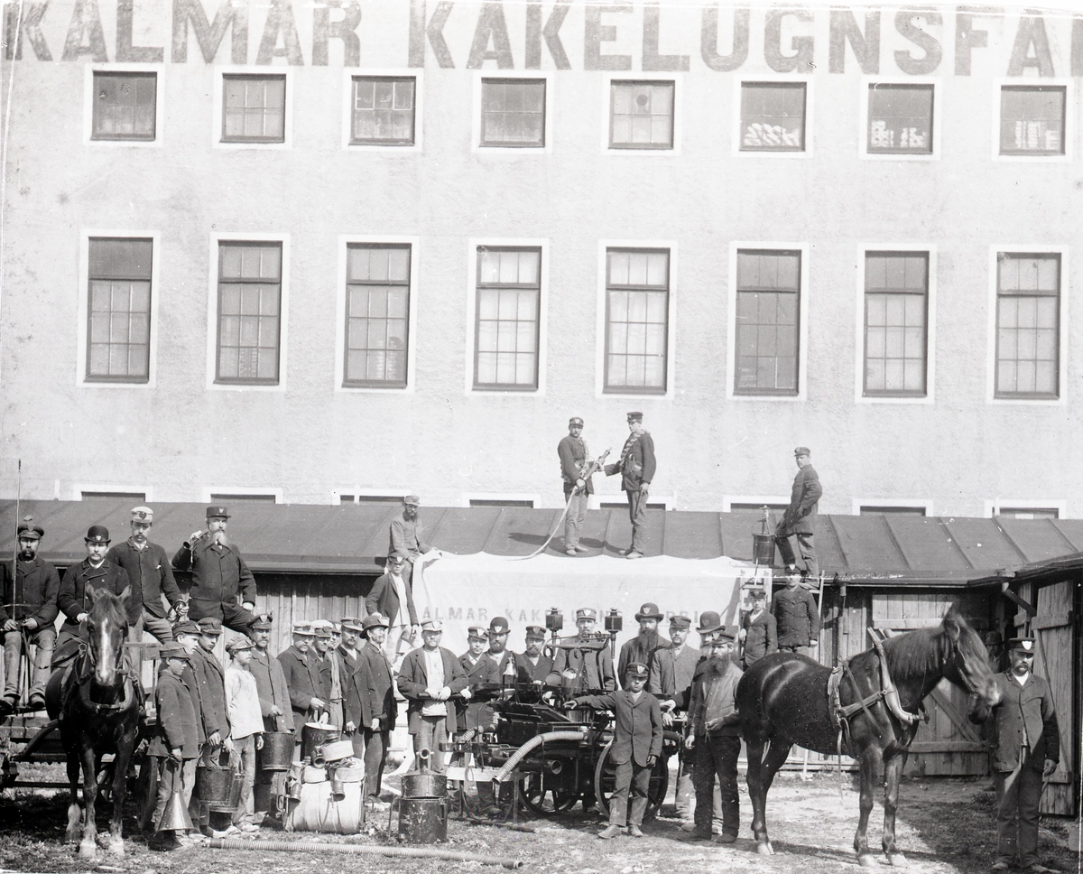 Brandövning vid kakelugnsfabriken på Södra Långgatan.