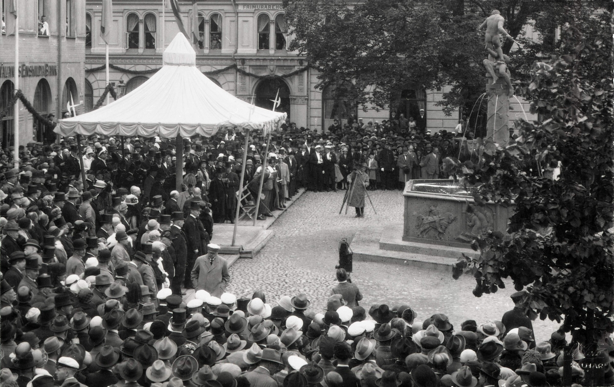 Kung Gustav V inviger Vasabrunnen på Larmtorget 1926.