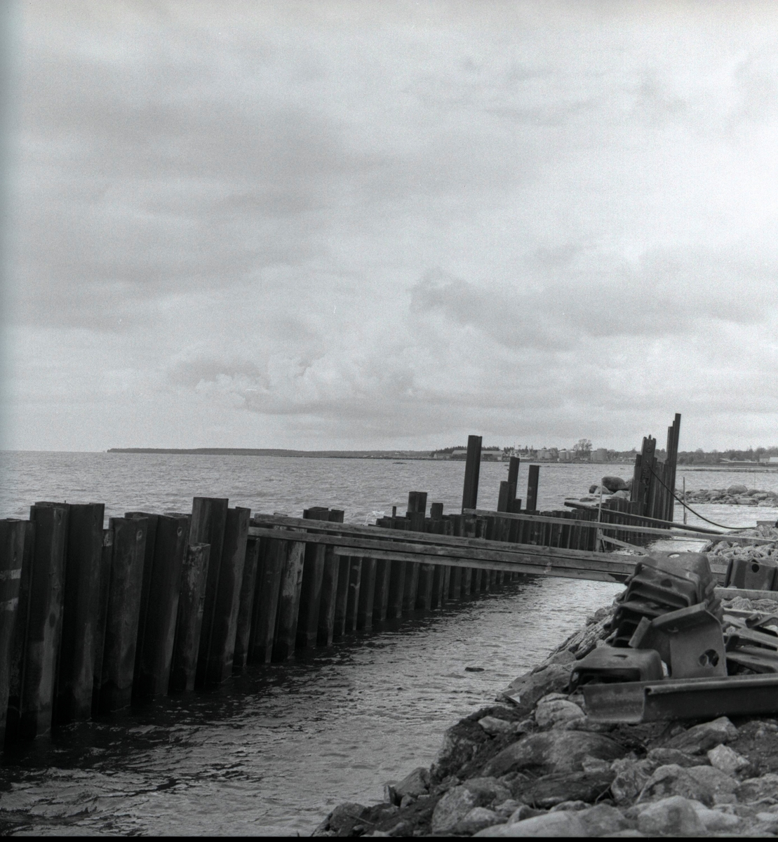 Förberedelser inför byggandet av Ölandsbron. På andra sidan sundet skymtar Kalmar.