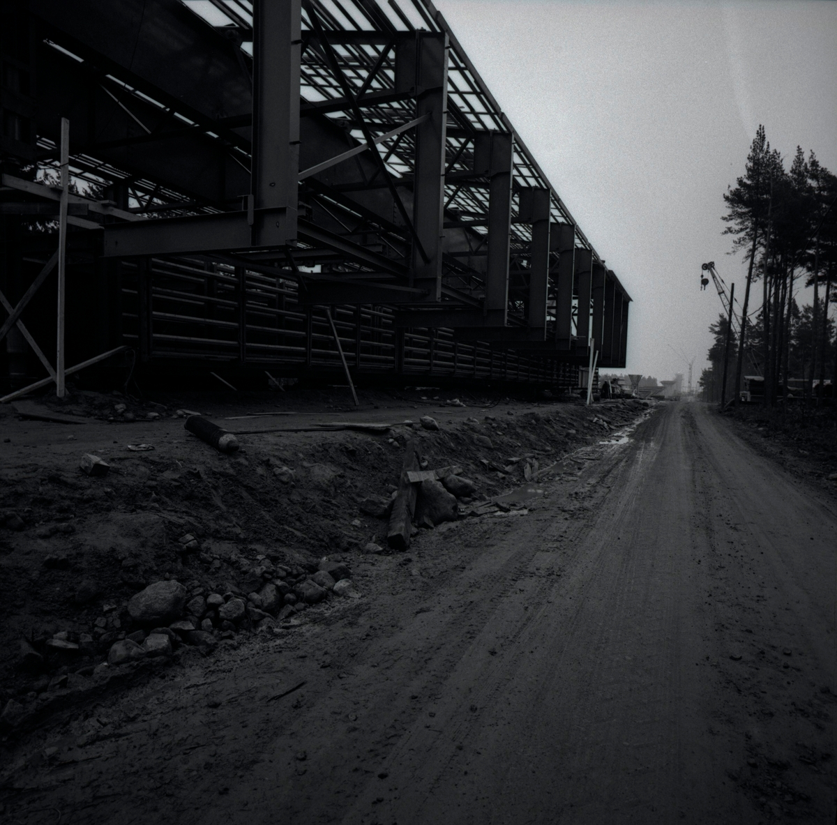 Titel: Vy från byggandet av Ölandsbron. Från Svinö med vägbanken bredvid bron.