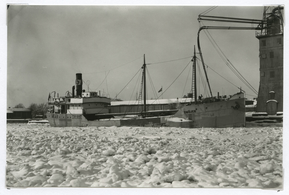 Ett fartyg som har svenska flaggan målad på sidan för att markera att det är neutralt i det pågående kriget.